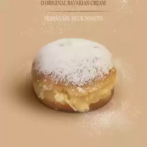 A massa de Donuts inconfundível do Mr. Duck, coberto com açúcar de Confeiteiro e recheado com creme Bavarian - Donuts... Ver completo